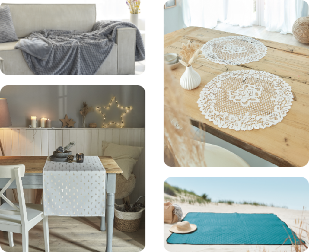 Ob kuschelige Decken für entspannte Abende, dekorative Kissen, die jedem Raum eine persönliche Note verleihen, oder stilvolle Tischdecken für besondere Momente – bei uns finden Sie die perfekte Verbindung aus Funktionalität, Qualität und Design.